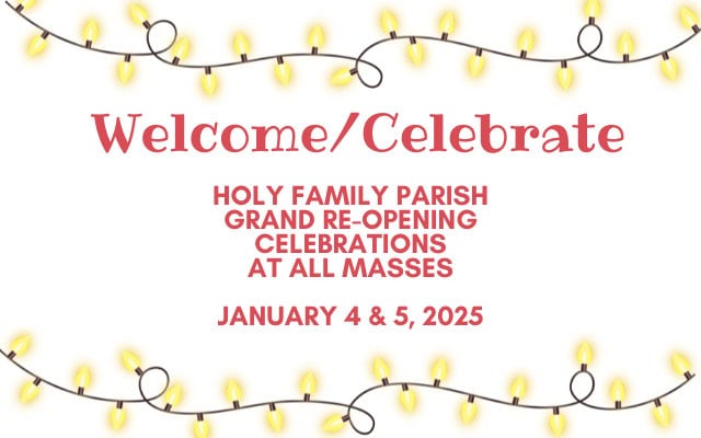 HOLY FAMILY PARISH Grand Re-Opening Celebrations will be held with Archbishop Donald Bolen at all Masses on January 4th and 5th, 2025.