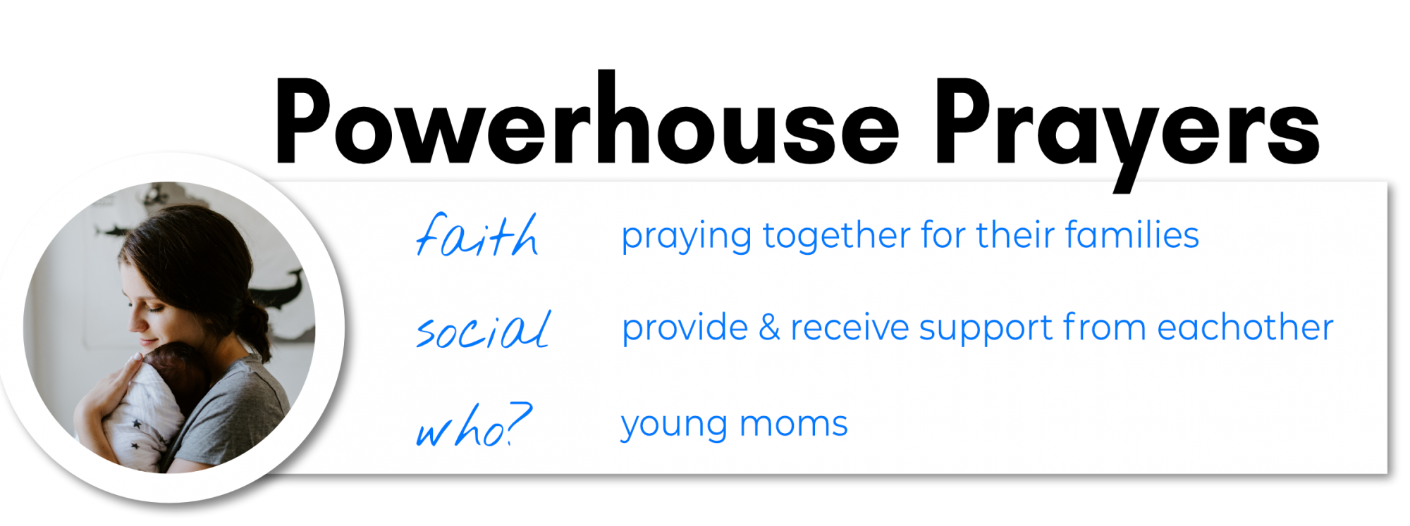 This is a small group that could happen online. It would be a gathering of young mothers, who would meet to pray for each other and for their families. The virtual gathering would always begin with a time of socializing and catching up.