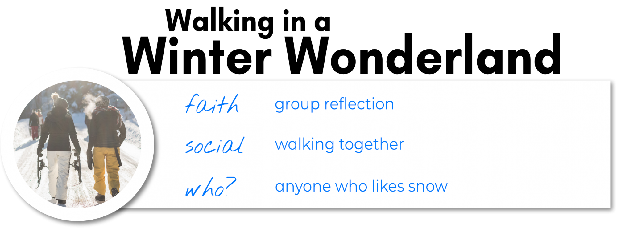 This would be a group for those who aren’t afraid to get a little cold.The group would meet at a pre-determined location (perhaps an established trail), and simply go for a walk and get some fresh air. They would end their time together by grabbing a hot chocolate at Tims, and partake in a guided faith sharing.