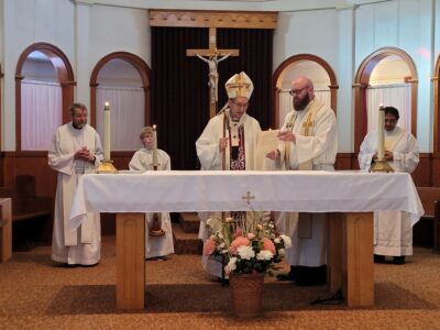 The Most Rev. Donald Bolen, Archbishop of the Archdiocese of Regina, along with Very Rev. Rick Krofchek, pastor of Immaculate Conception, and assisted by Rev. Mr. Norbert Gaudet, and Rev. Christian Lindenbach, celebrated the Mass of Decommissioning.