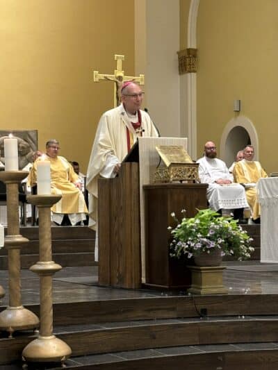 Bishop Don giving the homily at the diaconate ordination on June 7, 2024.