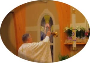 In the third movement of this liturgy, having encountered the glory of Christ’s light ablaze in the Easter proclamation and his shining golden thread in salvation history, we joyfully celebrate the baptisms of those entering our church this night and renew our own baptismal vows.